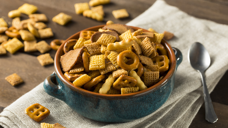 Day transforms leftover biscuits into a unique party snack by baking the biscuit cubes on a sheet pan until crispy, which will take about eight to 12 minutes. Then, she combines the golden biscuit pieces with other savory snack foods, like salted pecans, pretzels, sesame seeds, and cereal, before re-baking the entire mixture coated in a spicy sauce made with Worcestershire sauce, honey, and pantry seasoning. This recipe is full of pops of texture and color and will hit all of the umami flavor notes that your palate is craving. Plus, it uses the leftover biscuits sitting on your counter, and the small snack-sized ingredients pushed to the back of your pantry.