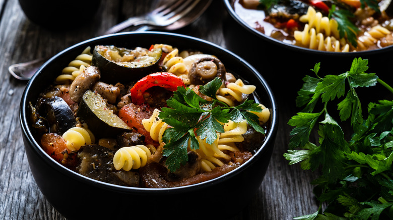 Typically made of braised meat in a rich sauce of red wine and tomatoes, ragu is a beloved classic. Although meat like ground beef or pork often lend the dish its savory taste, they can be swapped for vegetables to produce a ragu that's just as flavorful. Opt for eggplant in your ragu for a hearty, meat-free sauce.