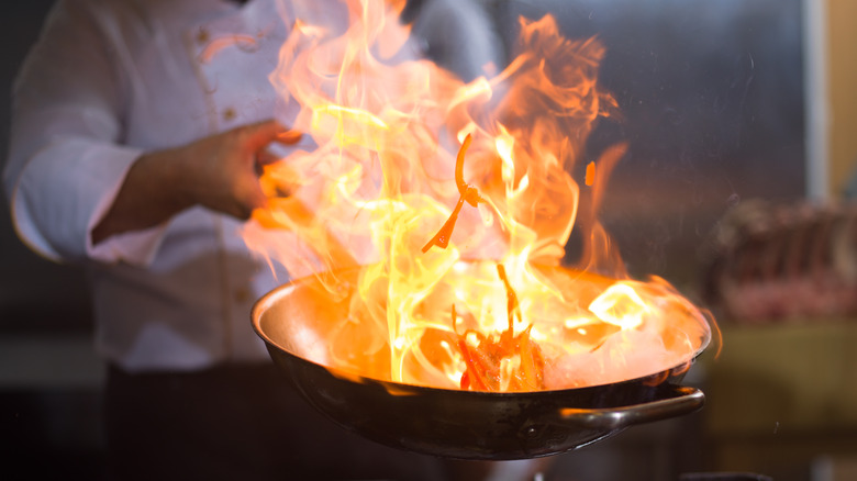 For example, Margaux, a French restaurant housed in Grand Rapids, Michigan's JW Marriott, offers two tableside dishes. These options include both a sweet dessert and a savory steak tartare. It's the sweet option, however, that brings the fire. When Margeaux diners order the flambé, the restaurant wheels out a cart with the ingredients and a stove. The nature of the flambé rotates; sometimes it's banana, other times it's apple with caramelized brown sugar and fall-spiced gelato. Regardless, the preparation doesn't take more than a few minutes and includes one last, crucial step: A flambé requires fire, so diners watch right from their seats.