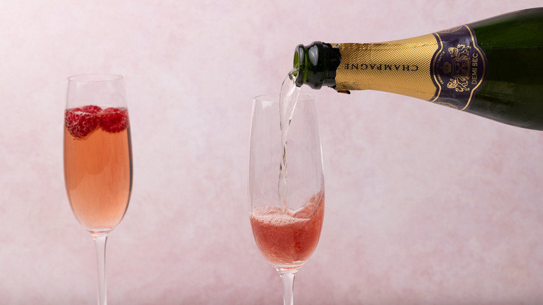 The perfect New Year's cocktail should be simple to assemble, elegant, and celebratory. The Kir Imperial ticks all of these boxes, making it the ideal way to toast in the new year. This cocktail is the equally classy twin of the classic Kir Royale cocktail — one you may well have heard of — which is a mixture of Champagne and crème de cassis. The Kir is in fact a variety of a drink that originated in France and was named after a former mayor. This form of drink is comprised typically of sparkling wines combined with a fruity liqueur, creating a wonderfully easy, slightly sweet, and bubbly drink that is ideal for a celebration.