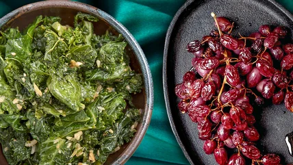 Fried Grapes Give Sauteed Kale A Crispy Burst Of Sweet Flavor