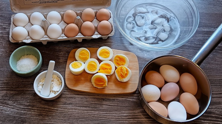 Depending on who you talk to, the 8-minute egg might be referred to as a medium-boiled egg or a hard-boiled egg. Technically, a medium-boiled egg has a yolk that's still on the liquid side, while the hard-boiled egg is fairly solid where the yolk is noticeably cooked through. But there's a sweet spot between the two that could be referred to as medium- to hard-boiled. This creates another kind of bite to the yolk — a feel that's not pudding- or jam-like, but also not dense or dry either.