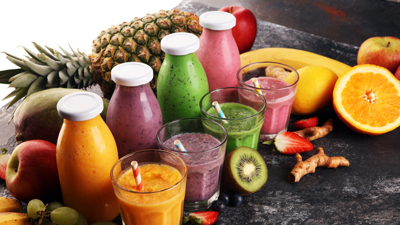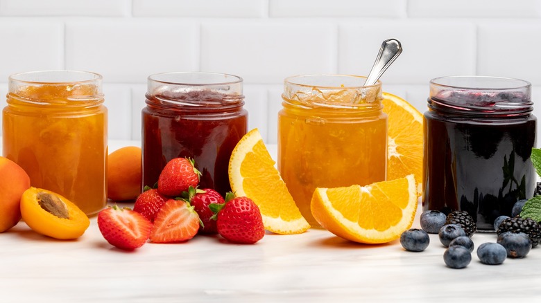 Fruits themselves can have bags of flavor if they're in season and fresh; however, they can turn bland if they are underripe, old, or even freezer-burnt. If you are using subpar fruit, your smoothie is not going to have much taste, making it less enjoyable. Meanwhile, fruit jams are packed with flavor that is concentrated — due to the fruit being cooked down — and will stay at peak tastiness as it is a preserved condiment. After all, making jams is an age-old way of preserving ingredients at their peak. While jam is not a replacement for real fruit in a smoothie, which provides the bulk and nutrients of the beverage, it is a fantastic addition to amp up the mouthwatering quality of the drink.