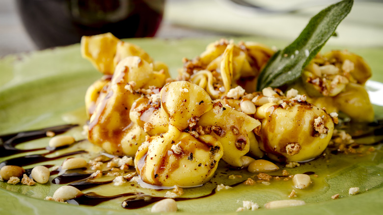 These flavors would also be delicious in a sweet and savory pasta salad with other fruits, like oranges; some Italian recipes tuck pasta with this filling into desserts with fruit, caramel, and gelato. In general, you may love filling these little purses with cheeses like gorgonzola or diced fruit like apple, and topping with sweet ingredients like candied pecans. Even when fiocchetti is used for savory dishes, pears tend to be a popular filling, although the pasta is often topped with a pink sauce or a fresh tomato sauce instead. But like we said, no matter which way you test out this cute little pasta shape, you're in for a treat.