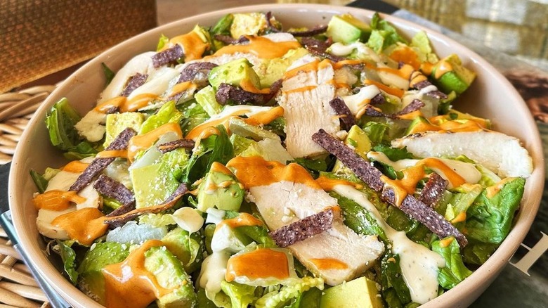 The best way to do this is to order the salad or bowl that comes with the options you want. For example, to recreate the Baja Mac and Cheese that Panera once offered, you'd order half a Baja Bowl Salad, and remove everything but salsa, cilantro, and avocado. To recreate the BBQ chicken, you can get the chicken Caesar salad and customize it so that it only includes salad plus chicken, barbecue sauce, cilantro, and frizzled onions.