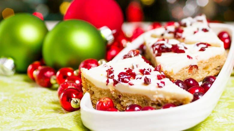 The Cranberry Bliss Bar is a sweet holiday treat that's become an annual seasonal offering at Starbucks. The crumbly, blondie-inspired bar is filled with dried cranberry pieces, topped with cream cheese icing, and balanced with even more delectable tart cranberries. The bar also contains zesty hints of orange flavor. It's easy to see why this is a beloved holiday favorite.