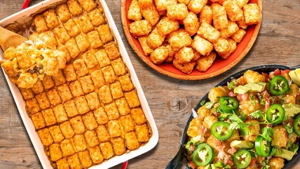 If you live near the Canadian border, you're probably as obsessed with poutine as we are. This upgraded fry recipe is often made with standard straight-cut fries covered in gravy and cheese curds. But rather than making this dish using the same old fries, we recommend jazzing up frozen tater tots with the flavors of poutine instead. All you need to do is air fry or bake your tater tots to perfection, then layer on the gravy and the curds like always.