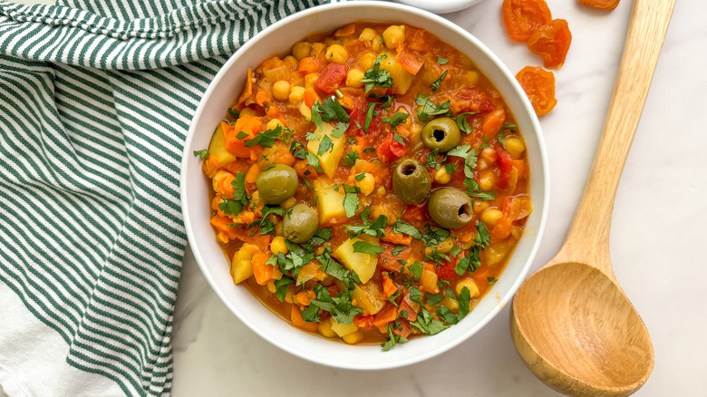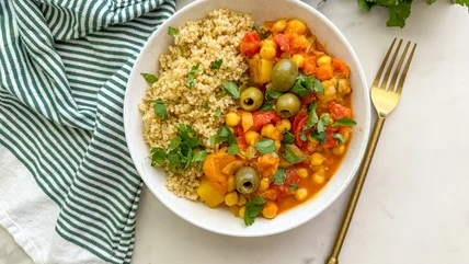 Wellness coach and recipe developer Miriam Hahn brings us this recipe for Instant Pot vegetable tagine and says, "If you don't own a tagine, the Instant Pot, with its pressure-cooking function, helps to achieve similar results to the traditional slow-cooking method of an actual tagine. I'm all about an efficient meal with lots of flavor and this tagine fits the bill." Hahn goes on to describe this dish as "savory, sweet, and tangy," and to fully round out the meal, "It can be served alone or with your grain of choice."