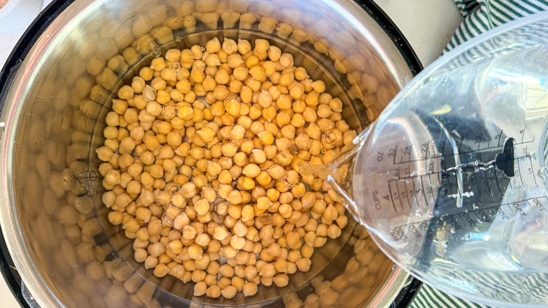 - Drain the chickpeas and pour into the Instant Pot with 4 cups of water and 1 teaspoon of salt.