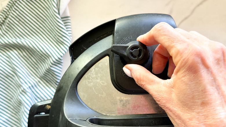 - Switch the nozzle on the lid to venting and, when all of the steam has been released, carefully open the lid and stir.