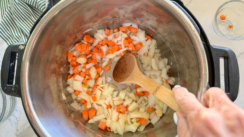 - Add in the onion, garlic, ginger, and carrot and saute for 5 minutes.