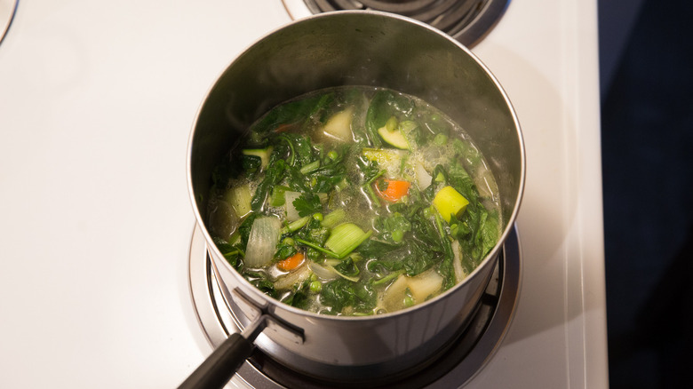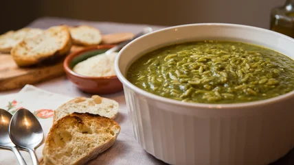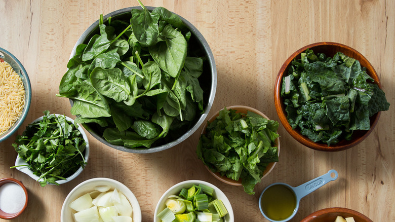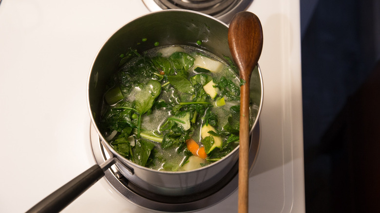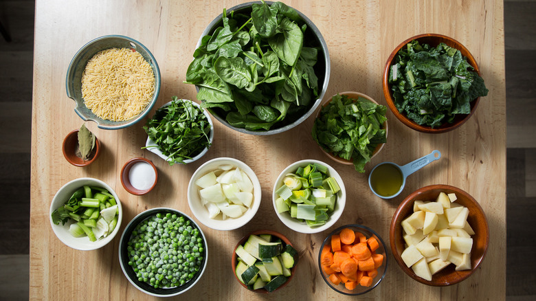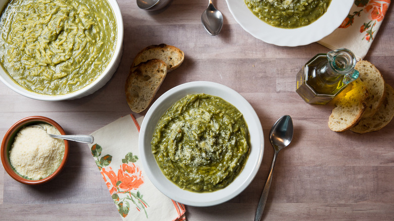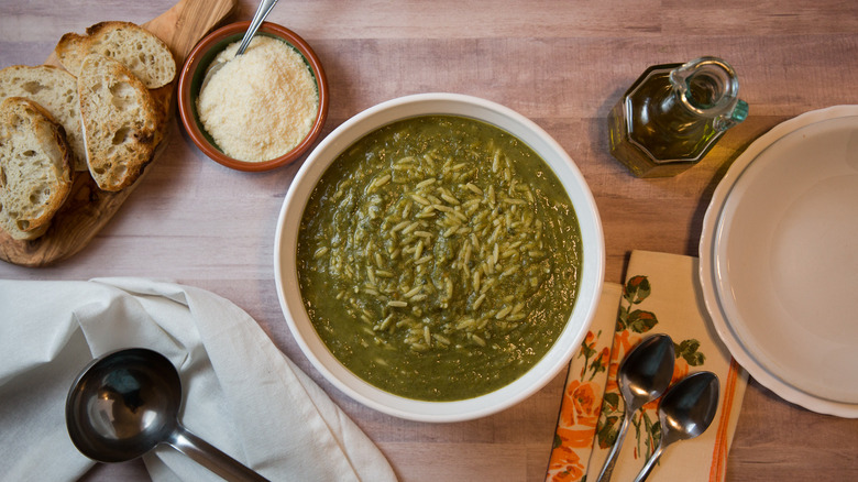 Recipe developer Michelle Bottalico has created a recipe for minestra verde that is not only nutritious but delicious and flavor-packed too. The ingredient list features four different leafy greens, which are nutritional powerhouses, and includes seven other vegetables as well. This is a satisfying and flavorful soup that also happens to be completely plant-based and suitable for vegans and vegetarians. The soup is served with pastina that is boiled separately and then mixed in at the end. Pastina isn't a specific shape of pasta but any kind of very tiny pasta shape. In the U.S. you will commonly find it in the shape of tiny stars. This recipe uses orzo pasta, but you can use any pastina you wish. This vibrant green soup may just become a delicious addition to your soup repertoire.