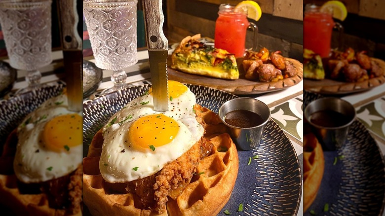 You can't go wrong with the chicken and waffles, which feature homemade hot honey poured on top. And if you're bringing some kids with you to participate in the brunch fun, there's a kid's menu, too, with options like Mickey Mouse-shaped waffles and cheesy eggs.