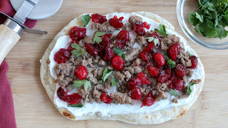 Ground Turkey Flatbread With Cranberry Chutney Recipe