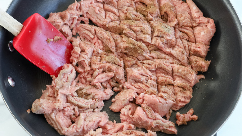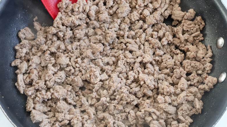 Cook over medium heat, breaking up the meat as you cook it, until the meat is browned (about 10 minutes). Transfer the meat to a separate plate and wipe out the pan.