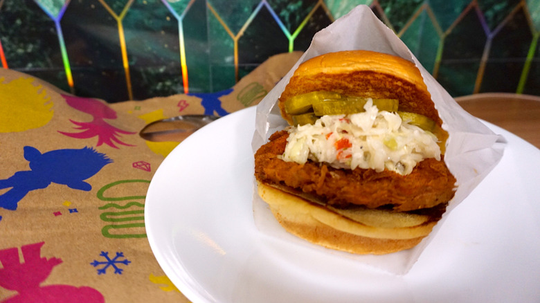 While other spice flavors can be intense but enjoyable, this one is just plain mean. It bullies your mouth into immediate pain, and you begin to question every decision you've made in your life that brought you to this point. We couldn't bear more than two bites of this sandwich ourselves, but if you're an all-time spice champion ... we would still even caution you before trying this one out. Even the mound of coleslaw on top couldn't counter the spice of the chicken. This was absolutely the spiciest of the spicy chicken sandwiches.