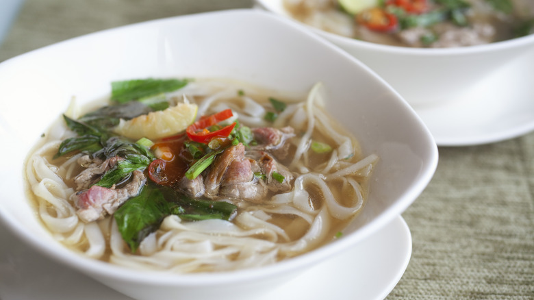 This sweetness, which is considered by the Vietnamese to be different from sugary sweetness, arises from the complex sugars and sweet-tasting organic compounds in the cow's muscles, per a 2011 study published in the Asian Journal of Animal and Veterinary Advances. But at this stage, the broth is only subtly sweet. To amp up the flavor, good old sugar crystals are added. While many Western recipes use refined sugar, authentic phở uses a special type called yellow rock sugar — and that's what sets the "traditional" phở apart from all others.