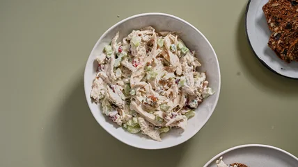 Premade chicken, while convenient, isn't the only option for this chicken salad. For that similar juicy texture, we love roasting a whole fryer chicken, then using the breast meat for chicken salad and saving the rest for other recipes like chicken noodle soup. You can also make a quicker homemade version by browning cubed chicken breasts in a skillet or boiling until easily shreddable.