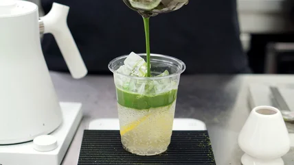 The roots of matcha go back to 7th century China, but in recent years, this concentrated green tea powder has become all the rage in the U.S. These days, you can get matcha lattes at mainstream coffee shops like Starbucks, where the chain uses milk and milk foam for its version of the drink. But while lattes may be the most popular way to drink this powder in the States these days, it's not the only way to do so. If you want to make the classic cup of matcha into a fun and refreshing chilled drink, opt for soda water instead of milk.
