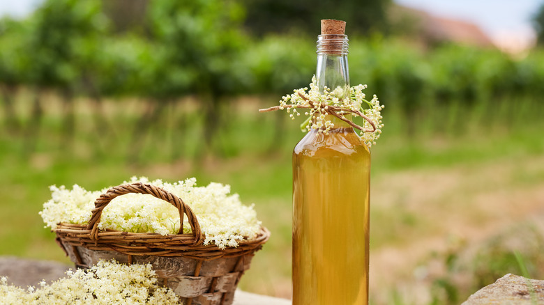 Elderflower syrup is not widely available at all grocery stores, though you may be able to track it down at boutique or specialty grocers. Additionally, it may be found at your local wine and spirits store, or you can make it yourself by infusing the flowers into simple syrup. A great way for beginners to try this syrup is by adding it to lemonade, where the floral flavors will play well off of the acidity of the lemon — just swap out the initial sugar or simple syrup called for in your favorite classic lemonade recipe. You can also add it in place of honey in tea, where it will heighten the other herbal flavors, or in place of other flavored syrups in coffee.