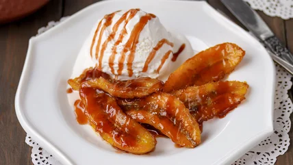 Thanks to the butter and sugar, the caramelized bananas will be sweet and rich — in other words, they are prime to be used in desserts. The simplest way to make them into a decadent dessert is to use them as a topping for a bowl of ice cream — combined with other toppings, such as whipped cream and chocolate sauce, you'll have one tasty ice cream sundae.