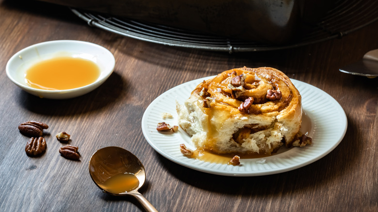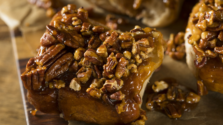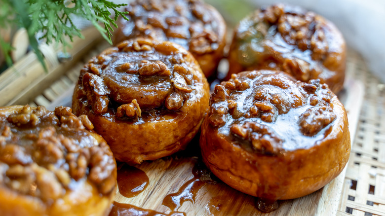 Sticky buns, meanwhile, can be iced, but it's not direly needed. The caramelized mixture of nuts, brown sugar, and butter on top is more than enough. Those with a serious sweet tooth might top off a batch of sticky buns with frosting, but traditional recipes don't feature any toppings beyond the characteristic layer of caramel. On the note of alternative ways to serve these treats, you can also forgo icing on your cinnamon rolls if you prefer a more restrained sweetness. When you whip up these pastries at home, you can customize them to your liking.