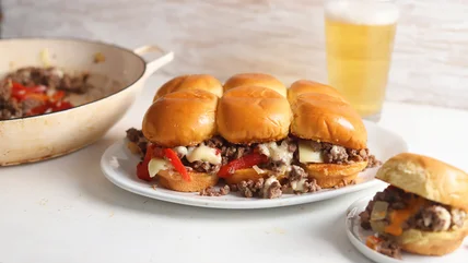 These hearty sliders take the best parts of sloppy Joes and Philly cheesesteaks and combine them into the most delicious appetizer, lunch, or dinner.