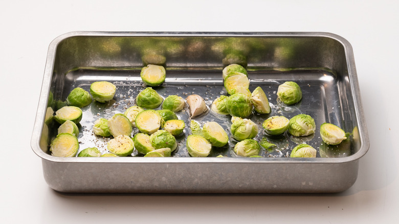 Step 3: Add the sprouts to a roasting pan