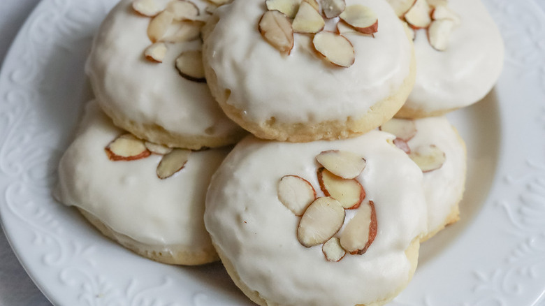 These almond sugar cookies prove just how much almond extract can enhance a baked good; one bite into these sweet treats will provide a slight nutty flavor that isn't overpowering by any means. Unlike some recipes that only include almond extract in the cookies themselves, this recipe takes things a step further by including it in the buttery icing, too. Topped off with a few sliced almonds for good measure, these delightfully chewy cookies provide all of the sweetness that you'd hope for from a sugar cookie, but they really do have a flavor complexity that is often lacking from such simple confections.