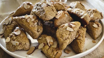 Naturally, these scones pair well with a cup of tea or are well-suited to a platter fully of pastries. When it comes time to serving, you can enjoy the spiced scones as-is, or you can double-down on the almond flavor by drizzling on a little bit of almond butter.