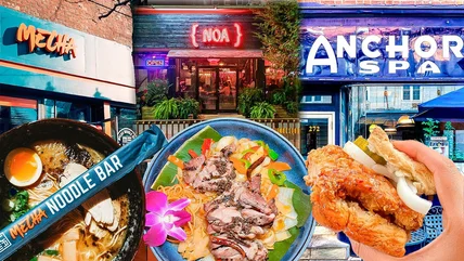 Noa prides itself on offering Thai and Lao food with contemporary twists. And the vibe of this restaurant accomplishes just that. It's moody and low but also modern and sophisticated. One of our favorite parts about Noa is that it's really made for going with groups of people; many of the items on its menu can be split and shared across people, including its moo tod (a fried marinated pork loin), Thai hot wings, or lychee and melon salad. If you're feeling like ordering a just-for-you order, check out its shrimp rad prik with chile sauce and Chinese broccoli, Noa drunken noodle, or pad see-ew served with grilled flank steak. You'll also find a rotating selection of curry and noodle dishes on the Noa specials board, which are perfect for when you're feeling something spontaneous.