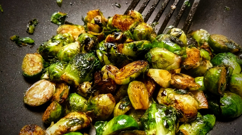 While many Brussels sprouts recipes, including Tasting Table's balsamic glazed version, suggest coating the bite-sized sprouts in extra virgin olive oil before roasting them in a baking pan, Stewart employs quite a bit of butter to achieve the perfect plate of Brussels sprouts. Her secret? Brush the baking pan with a generous amount of melted butter before adding in the vegetables.