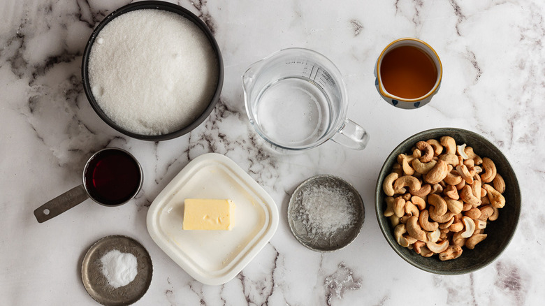 Gather the ingredients for maple cashew brittle