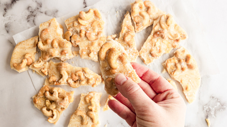 According to Ksenia Prints of At the Immigrant's Table, though store-bought brittle can be overly sweet and lack texture, homemade brittle is easy to customize to your taste. The secret is cooking the syrup to just the right temperature before adding the nuts — too hot and it will burn, too cold and it won't set properly. With a candy thermometer and a watchful eye, anyone can make this delicious brittle at home.