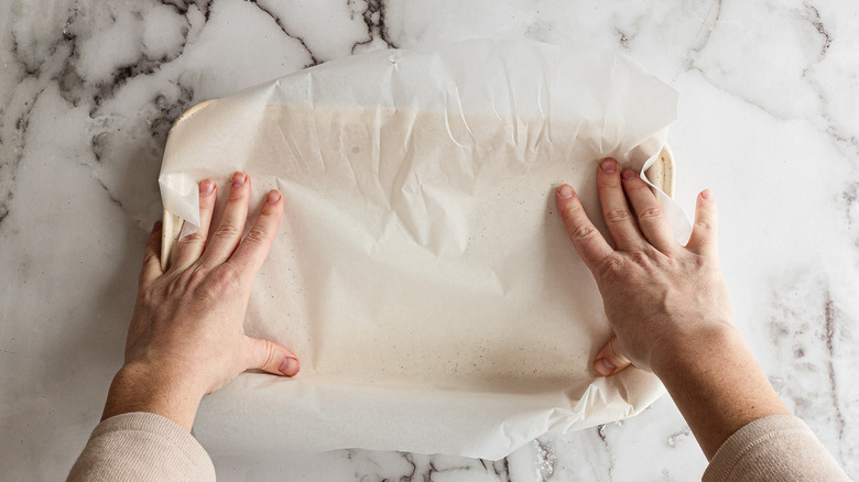 - Line a baking sheet with parchment paper.