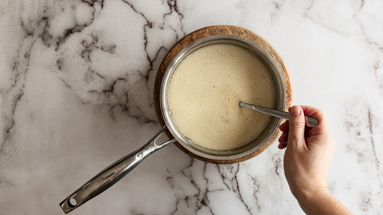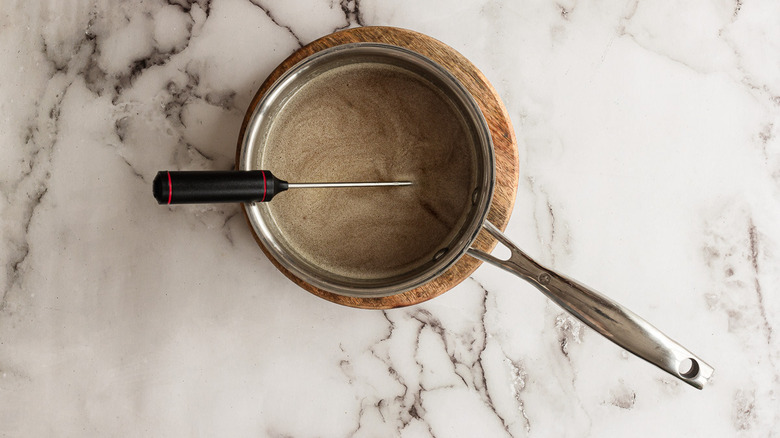 - Cook over medium-high heat until the mixture reaches 300 F, stirring constantly.