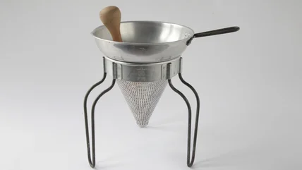 When it comes to straining sauces for a smooth, professional finish, a chinois is an indispensable tool in any kitchen. For the uninitiated, a chinois is a conical sieve with an extremely fine mesh. Chefs and home cooks use it to strain custards, soups, stocks, and sauces to achieve a smooth texture. However, anyone who's tried using one knows how passing thick liquids through the fine meshwork can be a slow and painstaking process. This is where the humble two-ounce ladle comes in as an unexpectedly helpful companion.