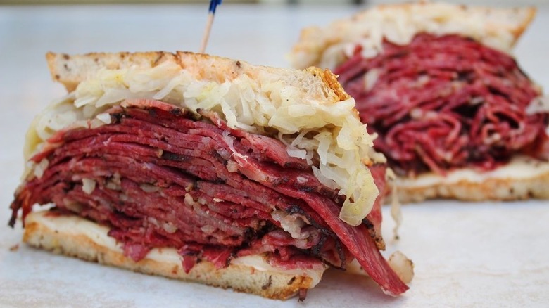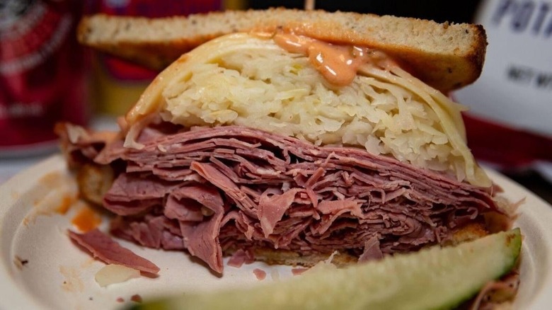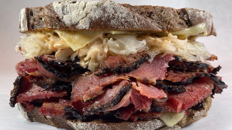 So exceptional, in fact, that the menu calls this item the "One and Only Reuben," served open-faced by default, or closed if you prefer. Kenny & Ziggy's doesn't stop there. It also offers a "Reubenesque" item, a Reuben-like hot dog complete with sauerkraut and Russian dressing. And let's not forget about The Big Reubowski, which is a Reuben but also a burger. Mind. Blown.
