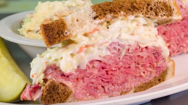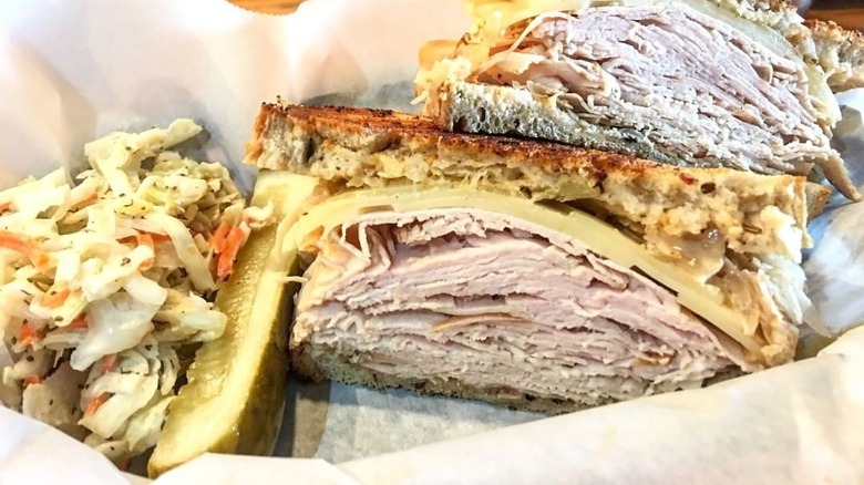 That sandwich? The Reuben, of course, even though Hank's makes it with smoked salmon — a testament to the sandwich's versatility. In addition, it contains Swiss cheese, remoulade, and coleslaw on rye bread. The flavor combination is different but it works just as well.