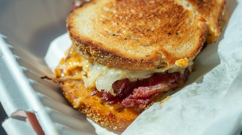 Start with Zingerman's Reuben, one of the most popular items on the menu, according to the company's website. The most classic version, it's made with corned beef, Emmental Swiss cheese, sauerkraut, house-made Russian dressing, and grilled rye bread baked on the premises. But don't miss out on the pastrami-based Binny's Brooklyn Reuben; the TNT Cowboy Reuben, which comes with beef brisket; or the Georgia Reuben, featuring turkey. There is even the vegetarian Rucker's Raucous Reuben, made with tempeh.