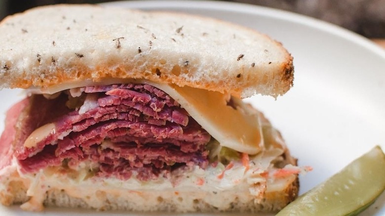Josh's Deli in Miami cures its corned beef in-house for 10 days before braising it, according to the Miami New Times, which explains why its corned beef Reuben tastes so good. When ordering, specify which meat you want, as Josh's also offers the Reuben with other meats, such as pastrami or roasted turkey, which are not bad either.