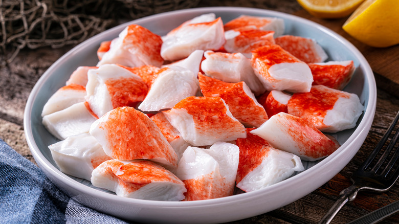 Although surimi is also known as imitation seafood, it's actually made from real fish. Alaska pollock and Pacific whiting are the two most common fish used but, as food science improves, more fish are being incorporated — including walleye, Atlantic cod, certain species of shark, and swordfish. Essentially, many of the fish that are caught that don't have as much name recognition as, say, tuna or salmon are processed into surimi.