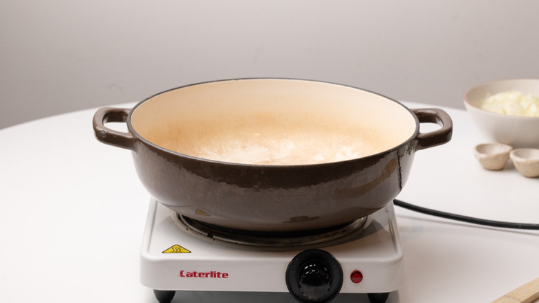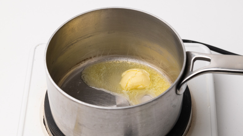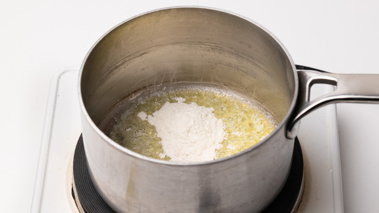 Meanwhile, make béchamel sauce by melting butter in a small saucepan over medium-low heat.