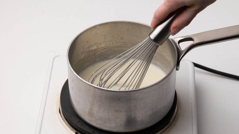 Slowly incorporate milk into the roux, whisking continuously, to form a thick and creamy sauce.