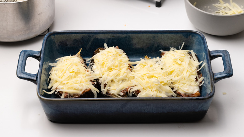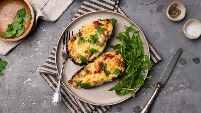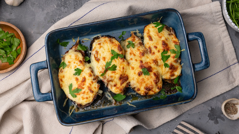 Whether you can't find a certain ingredient in the supermarket or you simply have other dietary preferences, this recipe for ground turkey-stuffed eggplant can easily be adapted to suit your needs. To make this dish gluten-free, simple swap out the flour in the béchamel sauce for a gluten-free variety. And, to adapt this recipe for dairy-free diners, you will again want to adapt the béchamel sauce by substituting the butter and milk for lactose-free varieties. Similarly, you will want to either substitute the cheddar for a dairy-free cheese or omit it entirely from the dish. Breadcrumbs makes a great alternative topping to give the eggplants some crunch.