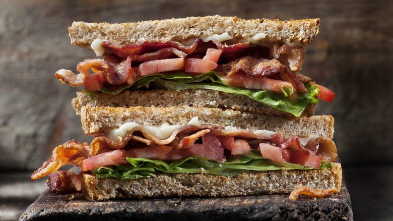 BLTs are a classic sandwich for so many great reasons, from their simplicity to their fresh and salty flavor, and yet they could be so much more. Any dish with as few ingredients as a standard BLT is going to live and die on the quality of what goes in it, and sometimes the components that make up the sandwich aren't on the right level. Bacon is hard to mess up as long as you get appropriately crunchy, and the same goes for a swipe of mayo. The flavor of your lettuce shouldn't be overlooked, but it's there from texture as much as taste. The bread shouldn't be an afterthought, either. You want some real flavor in the form of sourdough or multigrain. But the biggest offender is usually a soggy, bland tomato, taking up space when it should be standing out as a critical component. That's why you should want to try a marinade.