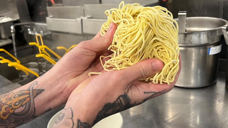 One of the most important components of a satisfying bowl of ramen is the ramen noodles themselves. According to chef Vidal Saioro, the type of ramen noodles you cook with have a tremendous impact on the overall taste and experience of the dish. Many home cooks use dried noodles but his recommendation is always, if possible, to go with fresh ramen noodles. "If you don't use fresh noodles, it's hard to achieve the springy texture we enjoy when slurping noodles," chef Vidal Saioro explains. Dry noodles aren't able to conjure as nuanced a texture as fresh noodles, which can detract from the sensory experience.