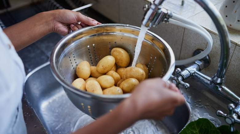 Heartier than a single french fry, these crunchy oval discs are perfect for serving buffet-style where they can be dipped in ranch, ketchup, or salsa as your party guests mingle. However, they also make a pretty and unexpected side when served at a sit-down meal with baked fish, steak, or chicken schnitzel courtesy of their eye-catching crisscrossed pattern. Dressed up or down, these golden taters are soft in the middle and crispy on the outside. Better yet, you can prep them ahead of time and safely leave them in the fridge overnight in a bowl of water, which is a fantastic time-saver for when you're busy making the other elements of your party spread. The water prevents browning and removes excess starch, which elicits a crunchier exterior when the slices are fried.