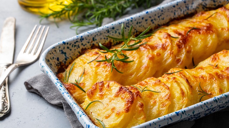 Beyond the challenging preparation, au gratin is also extremely rich. The cheese and cream seeps into every crevasse of these potatoes, which makes it difficult to eat — especially with other foods on your plate. Plus, we've always preferred crispier potato dishes over creamier ones, meaning potatoes au gratin misses the mark compared to the 12 dishes ranked higher.