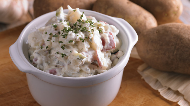 How you feel about potato salad may depend on whether you can jive with mayonnaise. Because when it comes to potato salad, it's never about the potatoes — it's about the controversial condiment (and those weird pieces of pickles and other ingredients interspersed throughout the dish). While we don't despise mayonnaise — it makes aioli possible, after all — the idea that perturbs us the most is eating potatoes cold.